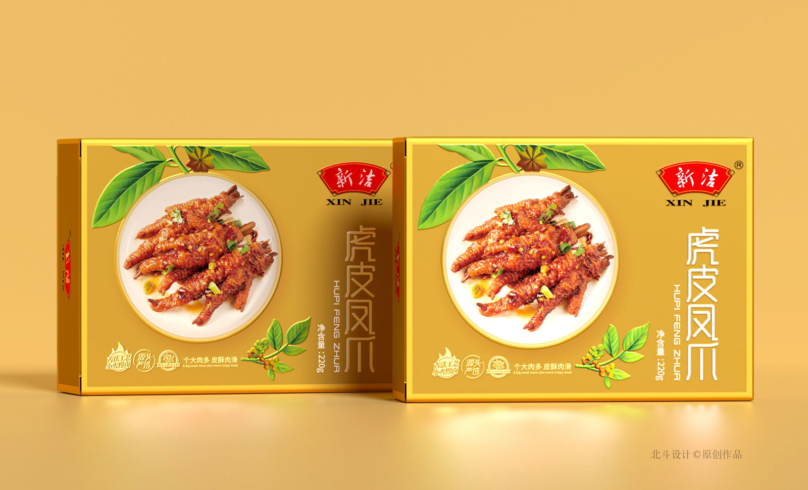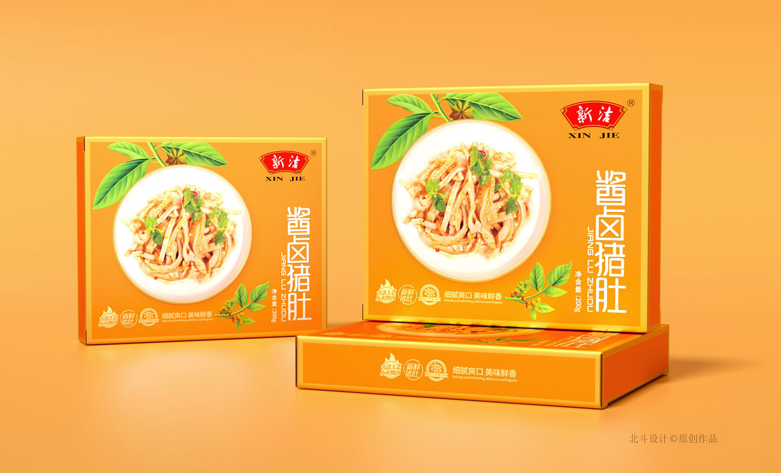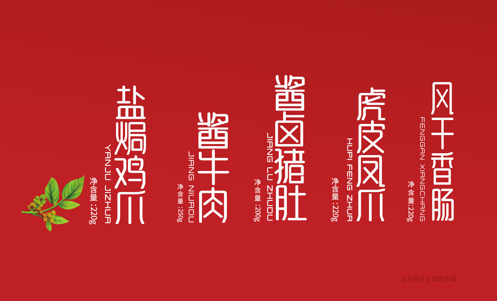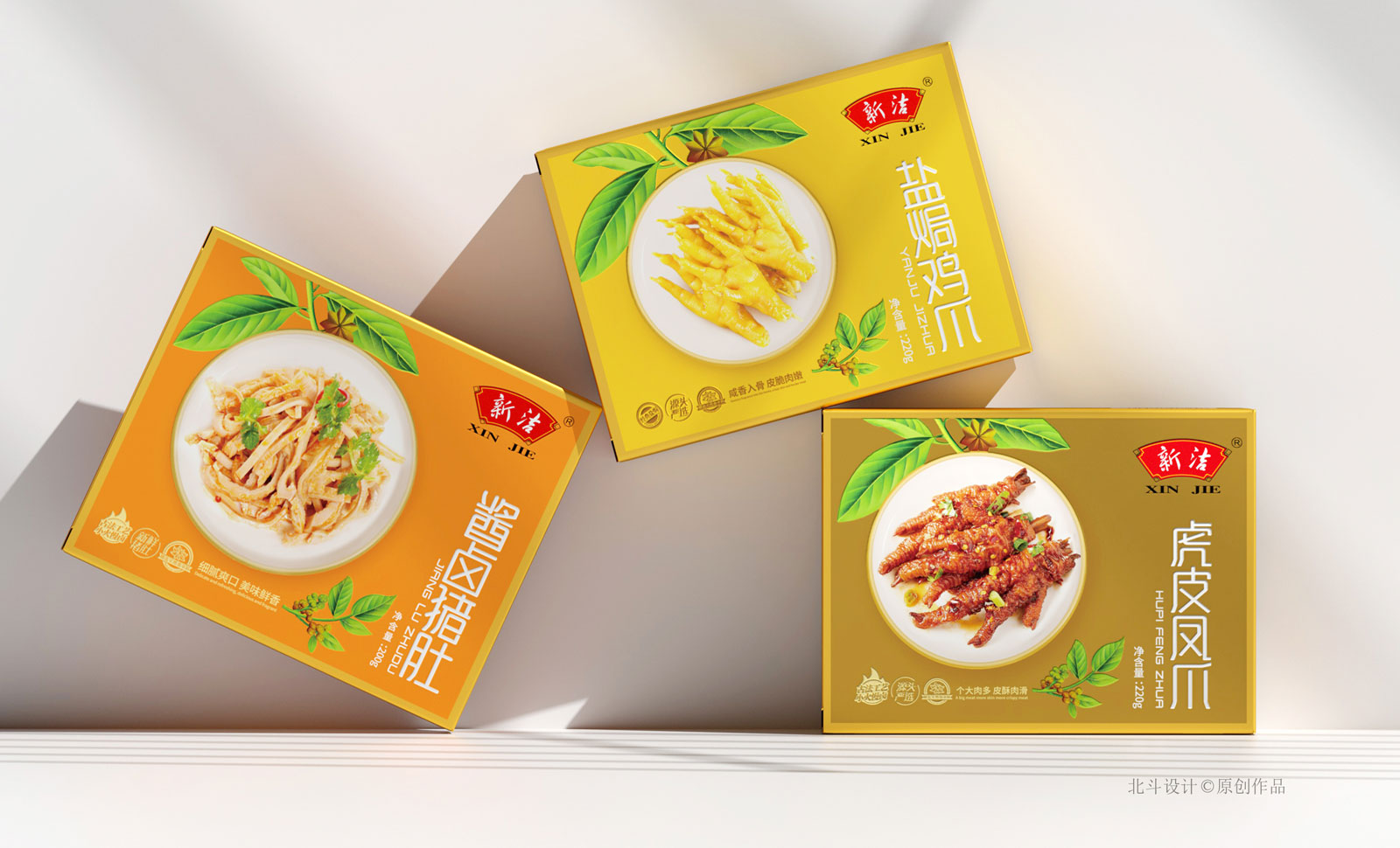 北斗設計于2018年開始與新正食品合作,期間完成了鹵鮮號品牌策劃設計,新潔燒雞系列產品包裝設計,這次合作的項目為升級舊有產品的包裝形象設計,總共五個單品,包含風干香腸,醬牛肉,豬肚,鳳爪。