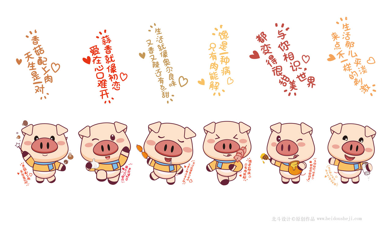 每一個成功形象設計背后是無數個被擊斃的形象設計,我們選擇一個卡通豬作為此系列的包裝戰略記憶符號,通過這個符號的演變豐富不同口味產品的包裝視覺體驗,同時規劃每一個產品對應不同口味的互動體驗語言,增加消費者與產品之間的互動感。