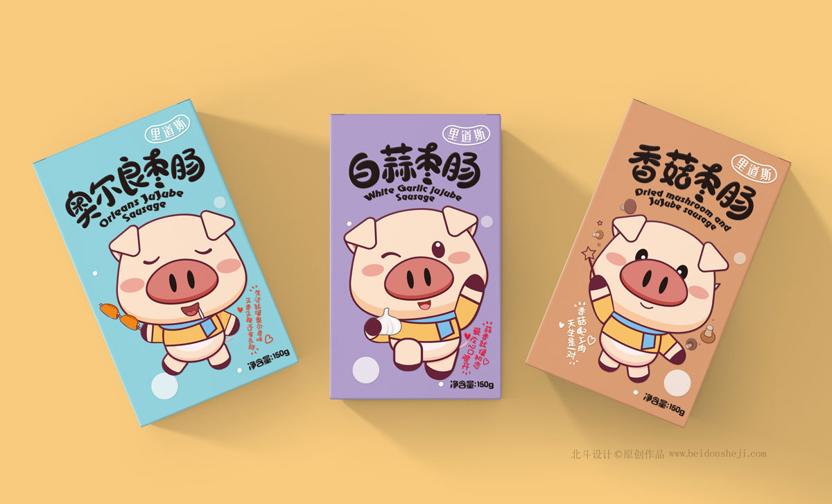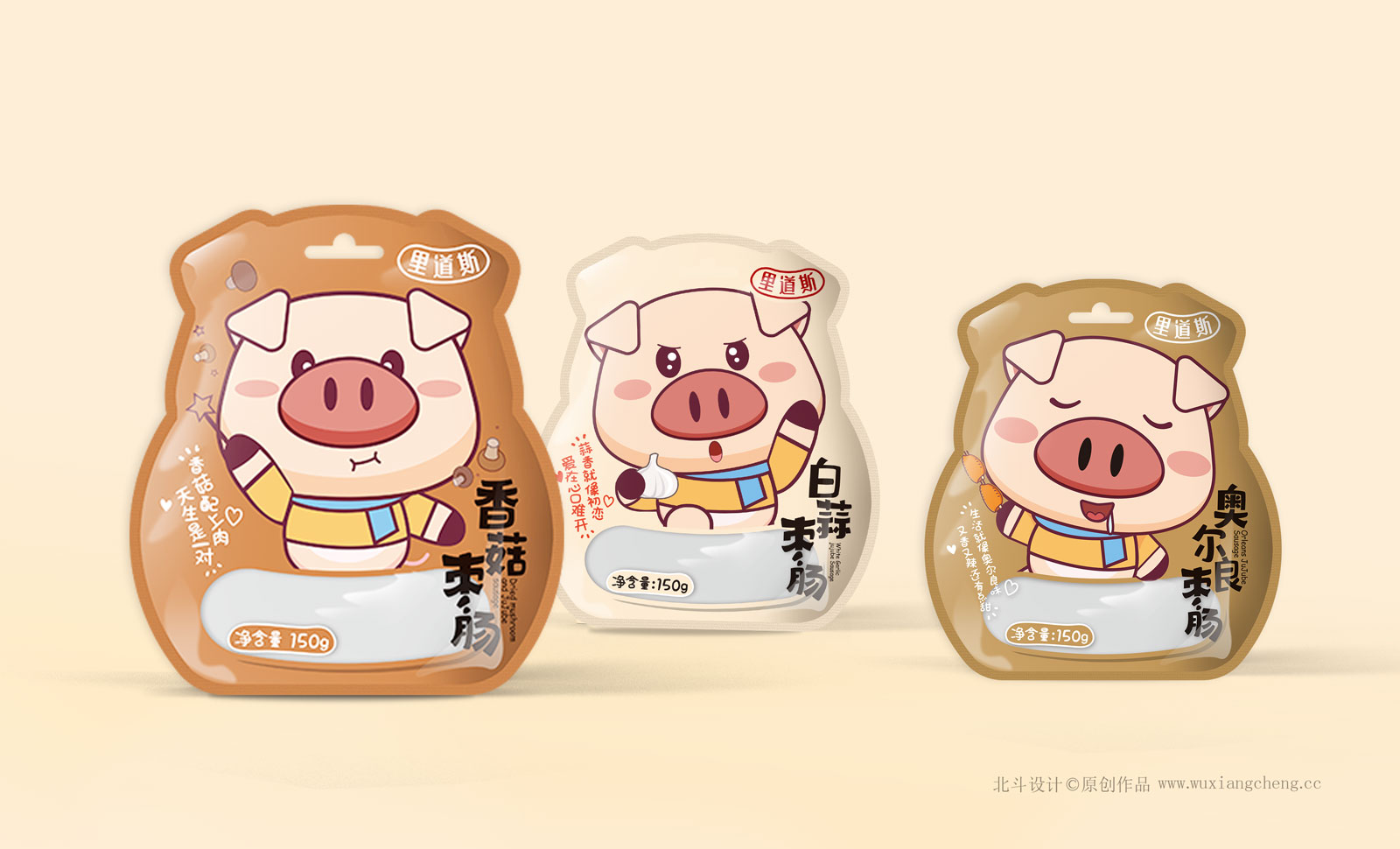 從卡通形象的塑造,到包裝形態上的規劃創意(規劃紙盒包裝設計+異形袋包裝設計),展現出這款q腸的呆萌概念。后續將繼續打造其終端廣告傳播設計,禮盒產品組合形式,品牌連鎖店面設計等業務,北斗設計2019年將持續為秋林食品提供品牌創意服務。