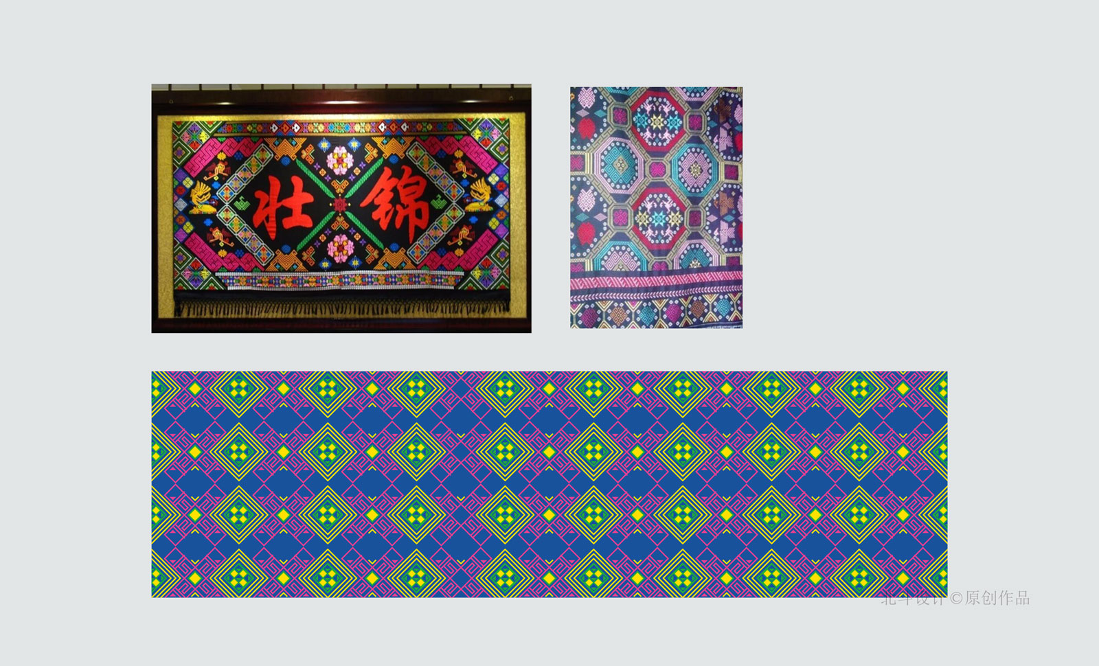 通過對于廣西文化的深入研究,我們選擇了廣西壯族的一種民族文化圖騰——“壯錦”,作為邦蓓優(yōu)品牌的寄生文化圖騰;壯錦,與云錦、蜀錦、宋錦并稱中國四大名錦,據(jù)傳起源于宋代,是中華民族文化瑰寶。我們通過基于產品陳列識別與后續(xù)不同媒體的應用,對壯錦圖騰重新設計排布,目的是為了更加契合不同產品包裝載體的陳列,為產品后續(xù)的創(chuàng)意預留更加充沛的發(fā)揮空間。