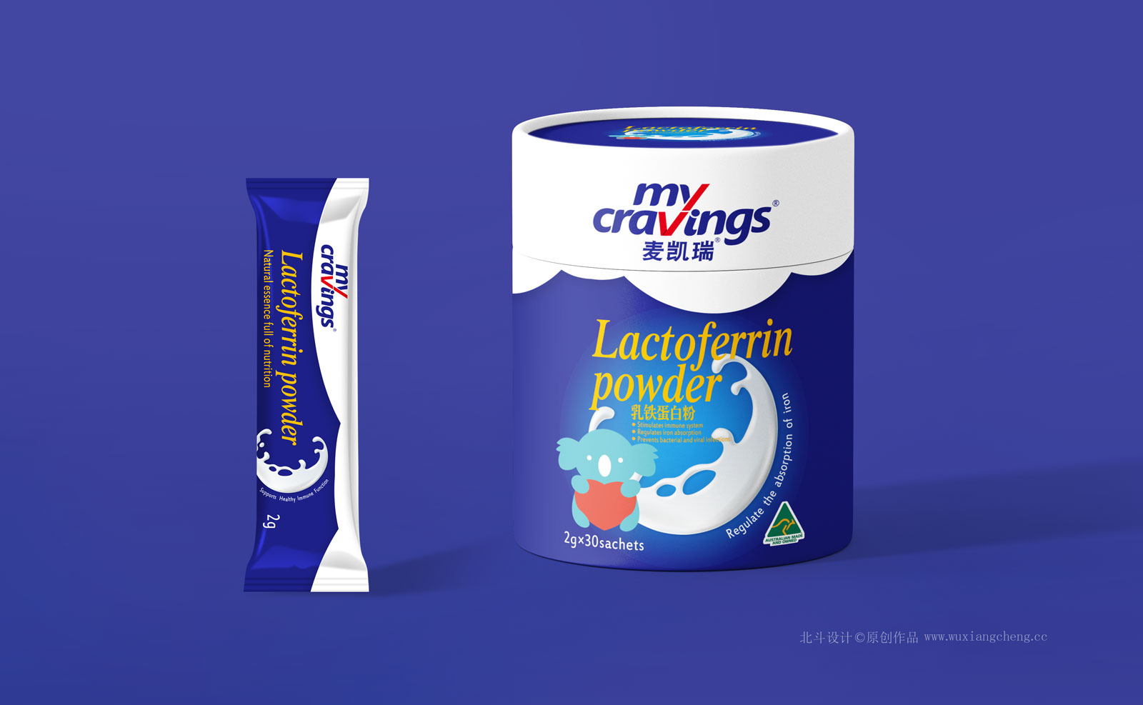 “奶花月亮”,通過對月亮這個元素的再創意,嫁接產品屬性,加強消費者對于mycravings乳鐵蛋白系列的認知及識別,在月亮旁邊設計一個可愛的考拉,豐富畫面的趣味性,而內袋設計更是精致簡約,展現產品與品牌的高端品質感。